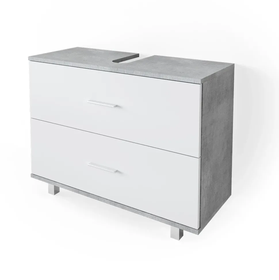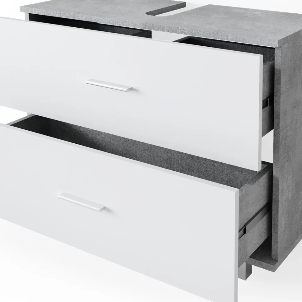 - Der Waschtischunterschrank mit Schubladen bietet viel Stauraum mit zwei großen Schubladen und einer Aussparung für den Siphon.