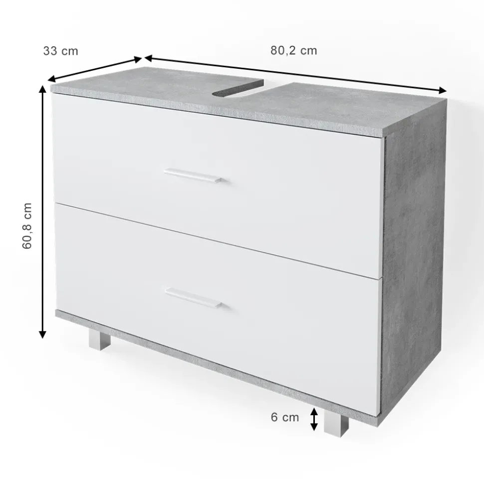 - MAßE: Der Unterschrank Badezimmer hat eine Breite von 80 cm, eine Höhe von 60,8 cm und eine Tiefe von 33 cm. Alle detaillierten Größen sind auf den Fotos angegeben.