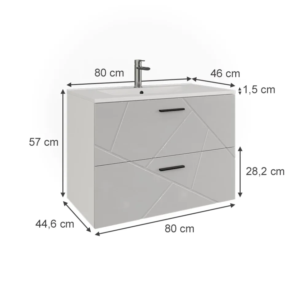 Waschbeckenunterschrank: 80 x 57 x 44.6 cm (BxHxT)