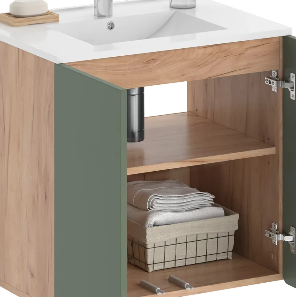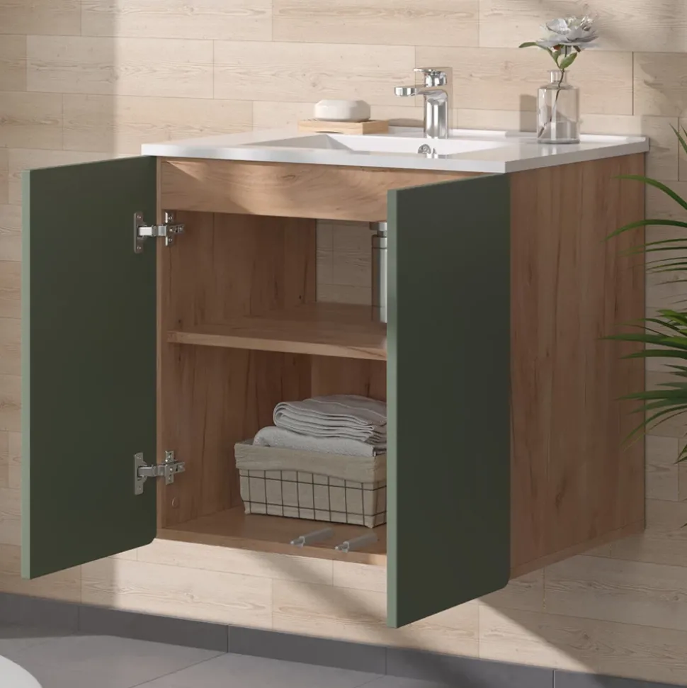 Das Badmöbel-Set Izan verwandelt jedes Badezimmer in eine Wohlfühloase. Mit einem Waschbeckenunterschrank und einem Waschbecken bietet dieses Set nicht nur ausreichend Stauraum für all Ihre Badutensilien, sondern verleiht Ihrem Badezimmer auch ein modernes und elegantes Aussehen. Die hochwertige Verarbeitung und das ansprechende Design machen das Izan Badmöbel-Set zu einem echten Hingucker in Ihrem Zuhause. Gönnen Sie sich mit diesem Set einen Hauch von Luxus und genießen Sie jedes Mal, wenn Sie Ihr Badezimmer betreten, das Gefühl von Entspannung und Komfort.