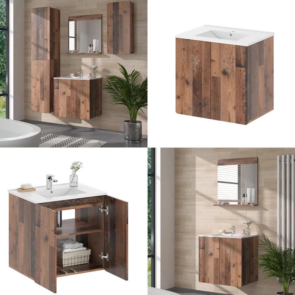 - MATERIAL: Das Badmöbel-Set besteht aus einer pflegeleichten 16 mm Spanplatte mit Melaminharzbeschichtung. Das Waschbecken ist aus Keramik gefertigt.