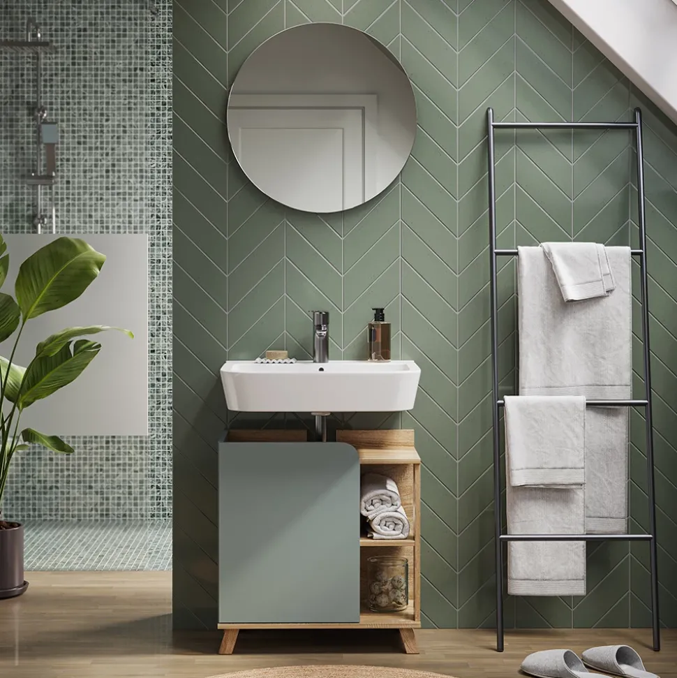 Der Waschbeckenunterschrank Karen ist der perfekte Begleiter für jedes Badezimmer. Mit seinem modernen Design und den praktischen Fächern bietet er ausreichend Platz für alle Badutensilien. Ob offen oder geschlossen – die Wahl liegt ganz bei Ihnen. Selbst der Siphon findet unterhalb des Beckens seinen Platz – dank des intelligenten Ausschnitts. Das zeitlose Design passt perfekt zu jedem Einrichtungsstil und verleiht Ihrem Badezimmer das gewisse Etwas.
