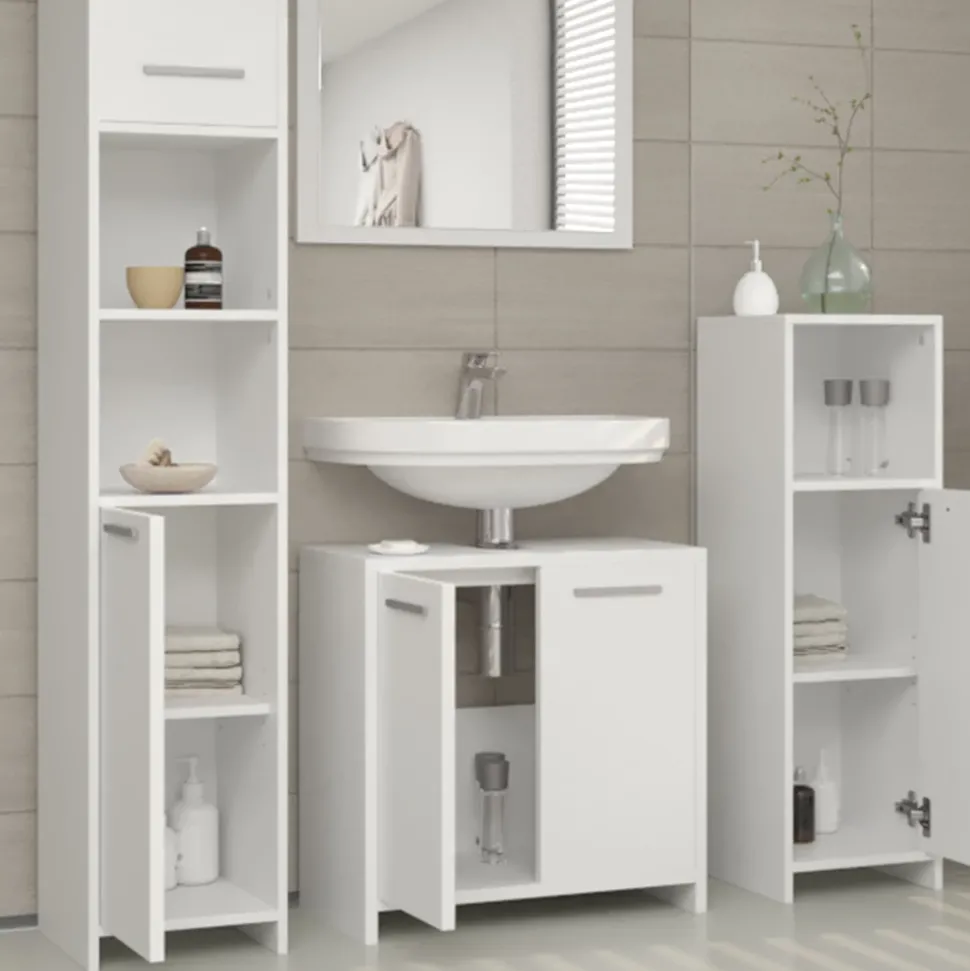 - MATERIAL: Der Badunterschrank besteht aus pflegeleichter Spanplatte 16 mm, mit einer Melaminharzbeschichtung