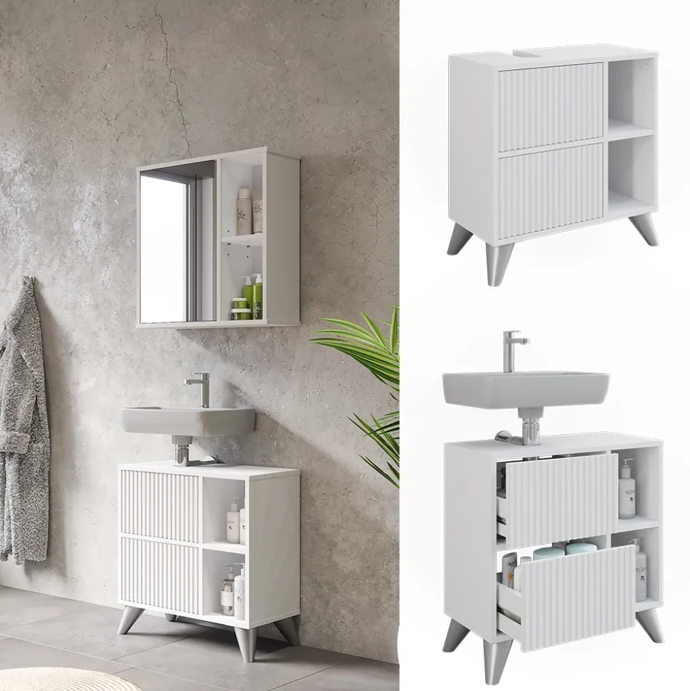 - MATERIAL: Der Waschbeckenunterschrank besteht aus einer pflegeleichten 16 mm Spanplatte.