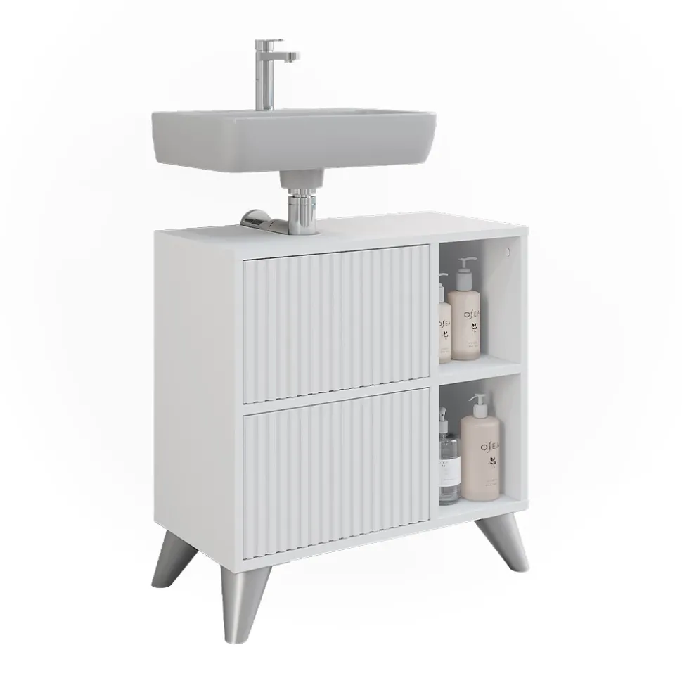 Der Waschbeckenunterschrank Leano ist die perfekte Lösung, um Ihr Badezimmer stilvoll und ordentlich zu gestalten. Mit seinem schlichten Design fügt er sich nahtlos in jede Badezimmereinrichtung ein und bietet dabei viel Stauraum für Ihre Pflegeprodukte und Handtücher. Die hochwertige Verarbeitung und die einfache Montage machen den Badunterschrank zu einem langlebigen und praktischen Möbelstück. Stellen Sie sich vor, wie entspannend es sein wird, morgens in ein aufgeräumtes und schön gestaltetes Badezimmer zu kommen – der Unterschrank Leano macht es möglich. Gönnen Sie sich diese tolle Ergänzung für Ihr Badezimmer und erleben Sie jeden Tag ein Gefühl von Ordnung und Komfort!