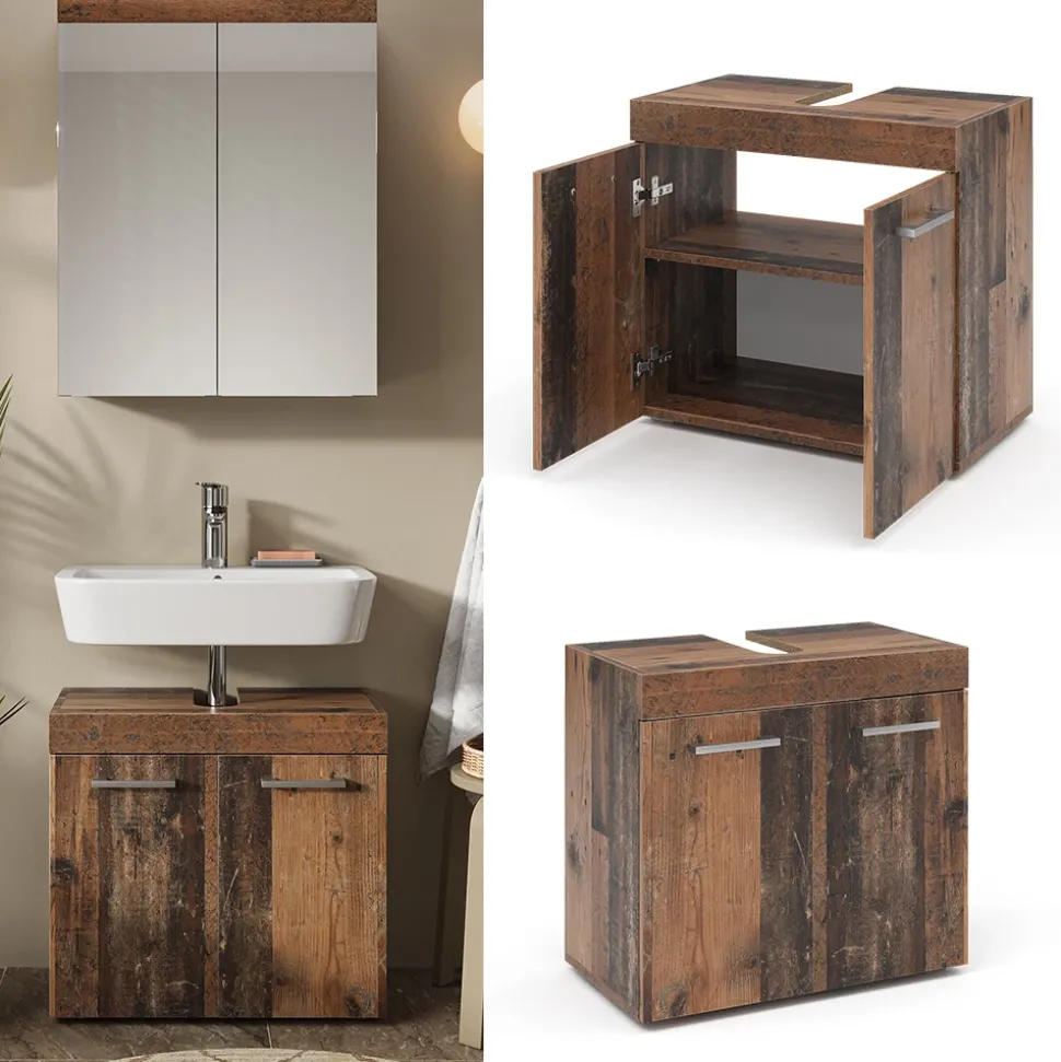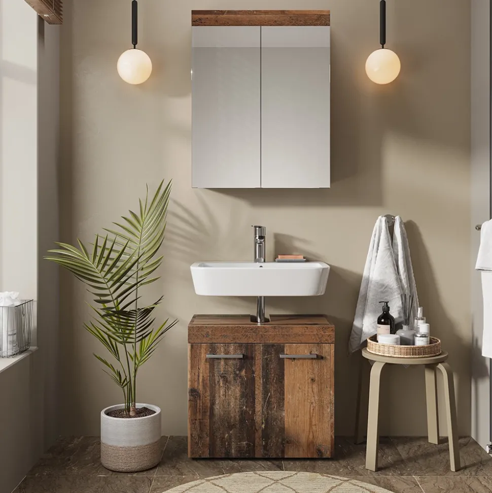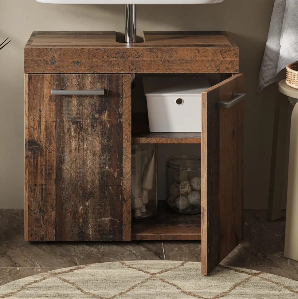 - Der Waschtischunterschrank ist mit zwei Flügeltüren und einem Einlegeboden ausgestattet und bietet reichlich Stauraum.