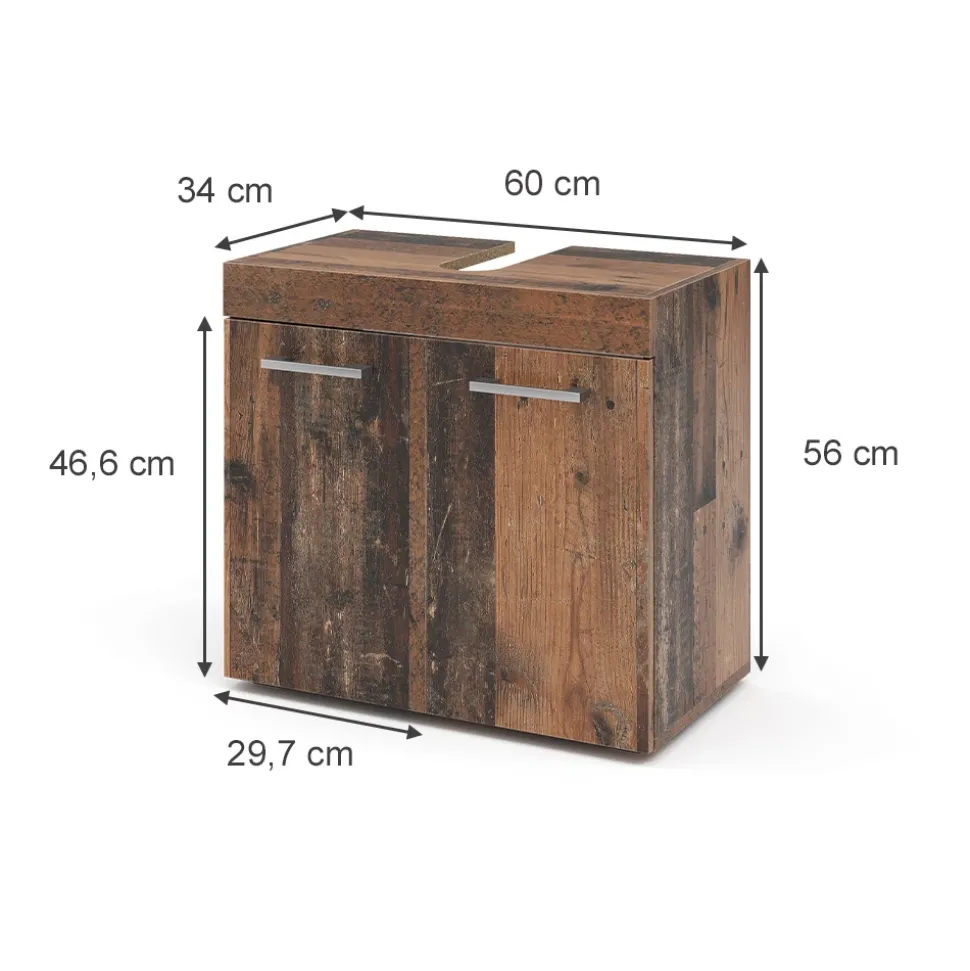 - MAßE: Der Unterschrank für das Badezimmer hat eine Breite von 60 cm, eine Höhe von 56 cm und eine Tiefe von 34 cm. Alle detaillierten Größen sind auf den Fotos angegeben.