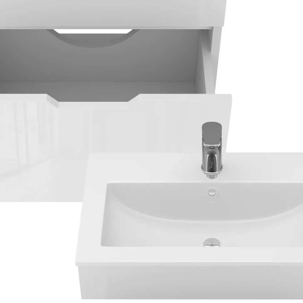- MATERIAL: Das Badmöbel-Set besteht aus pflegeleichter, melaminharzbeschichteter 16 mm Spanplatte. Das Waschbecken ist aus Keramik gefertigt
