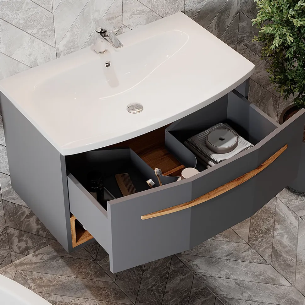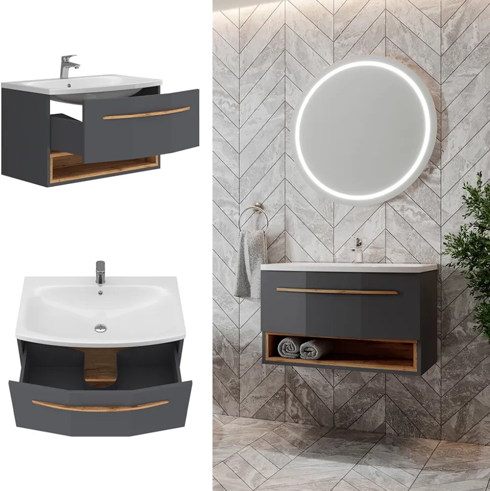 Die Möbelserie „Stelantis“ präsentiert stilvolle Badezimmerset, die mit ihrem zeitgemäßen Design und hochwertigen Materialien eine elegante Lösung für die Einrichtung Ihres Badezimmers bieten. Mit „Stelantis“ schaffen Sie eine ansprechende und funktionale Atmosphäre für Ihre tägliche Pflegeroutine.
