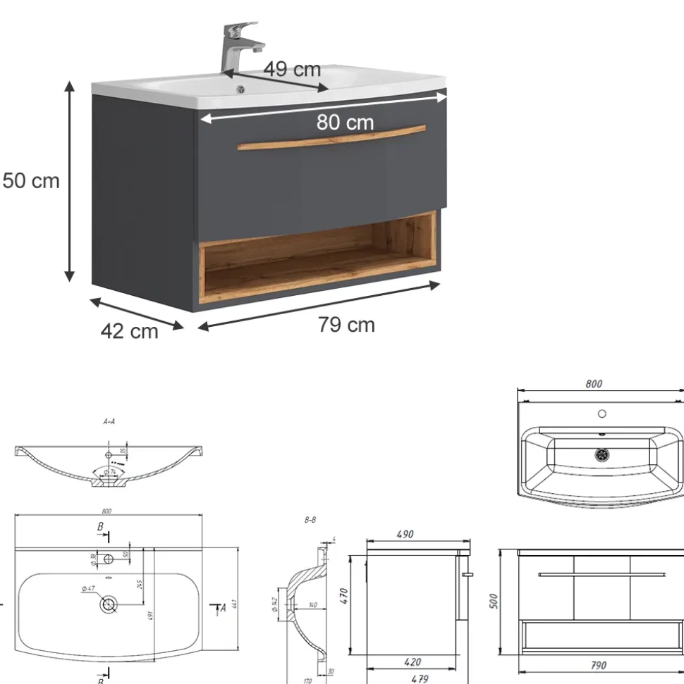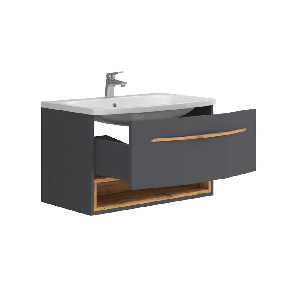 - Unser Set mit Waschbeckenunterschrank „Stelantis“ ist eine gute Entscheidung für jedes Heim. Das optimale Design und stilvolle Aussehen machen es universell für jede Wohnung.
