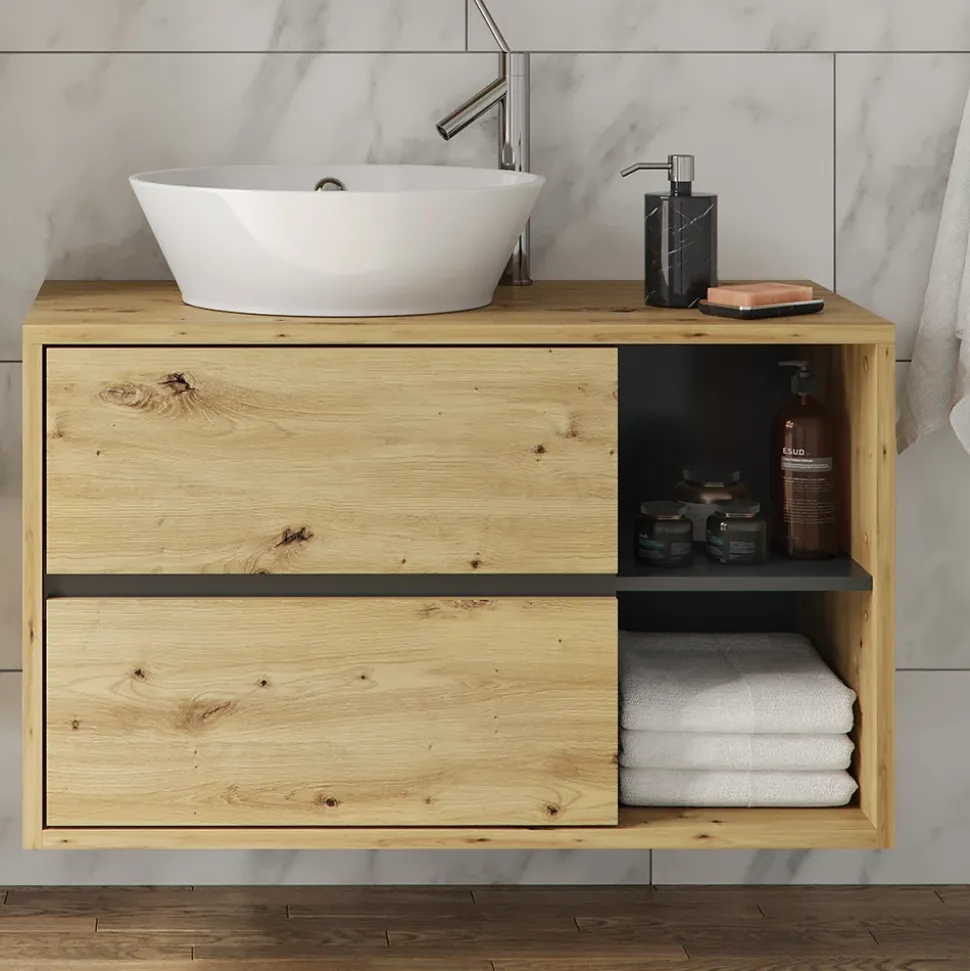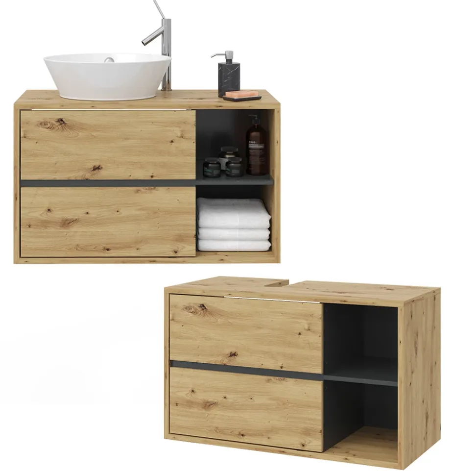 - Der Waschtischunterschrank mit Schubladen bietet viel Stauraum mit 2 großen Schubladen und 2 offenen Ablagen.